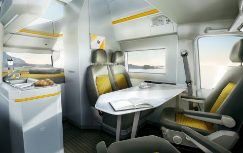 Similar to most campers on the market, this adventure van has a bed, kitchenette, and living area. But the XXL also has sophisticated features like a roof that pops up for an additional 7.2 feet of headroom, a retractable wet room, a heated and cooled bed, an extendable work surface, and underfloor heating. The interior of the van is just as sleek as the exterior, with wrap-around dual ambient lighting and a panoramic roof that's made for stargazing.